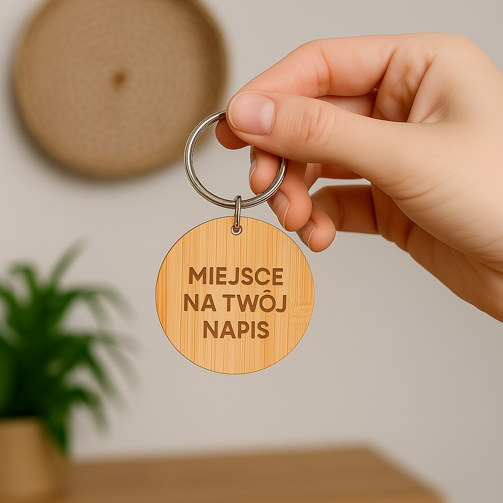 4x Personalizowany breloczek z bambusa – Twój unikalny znak rozpoznawczy!