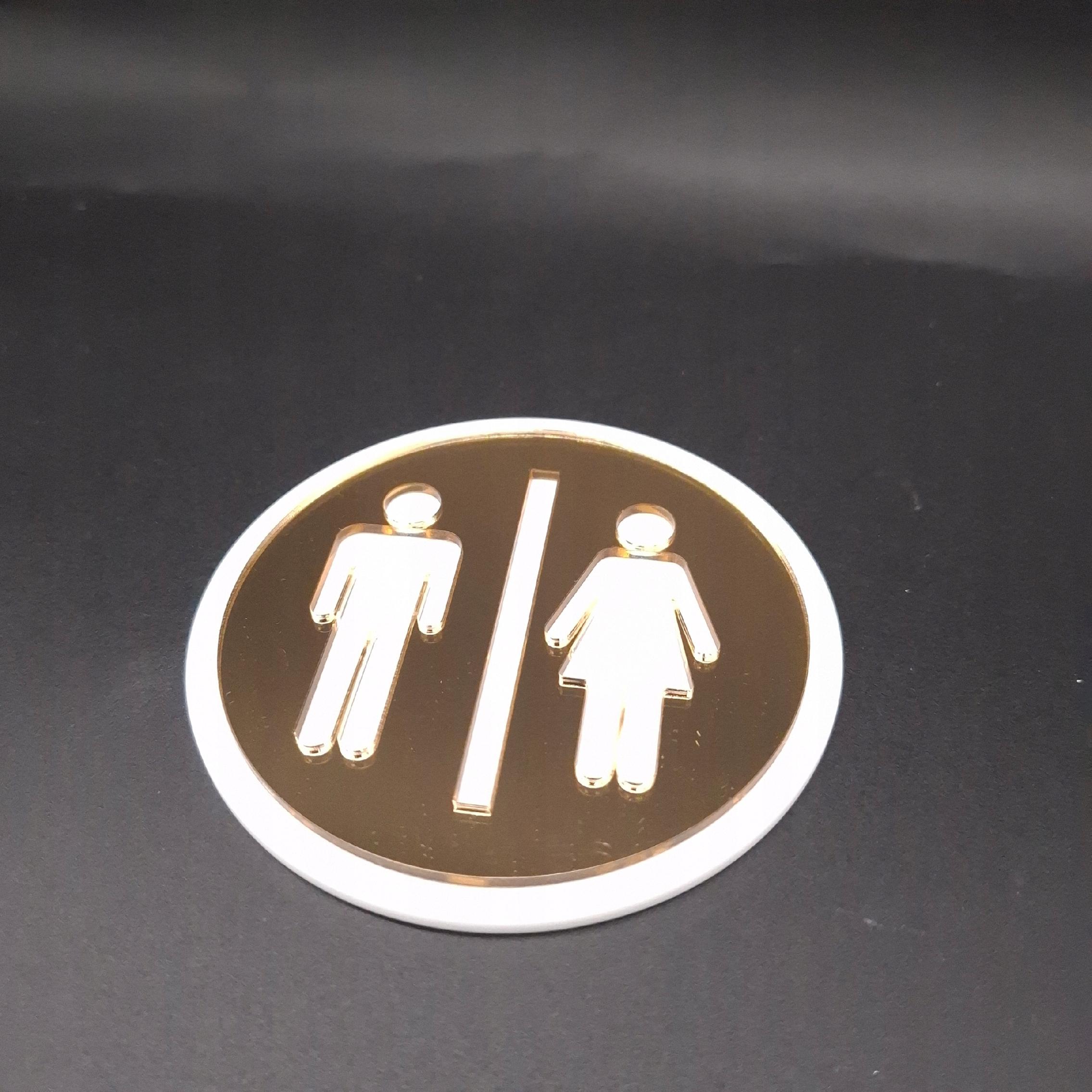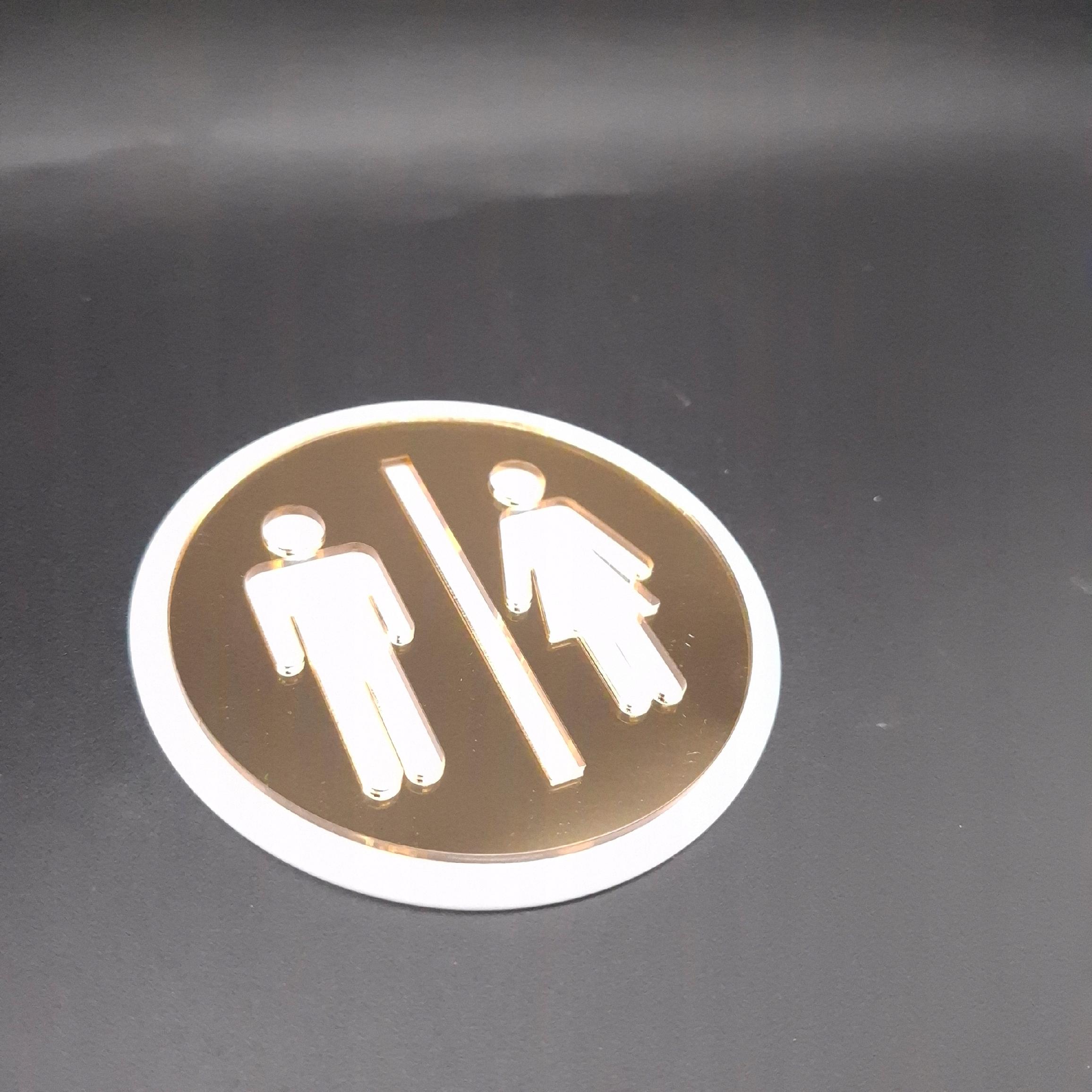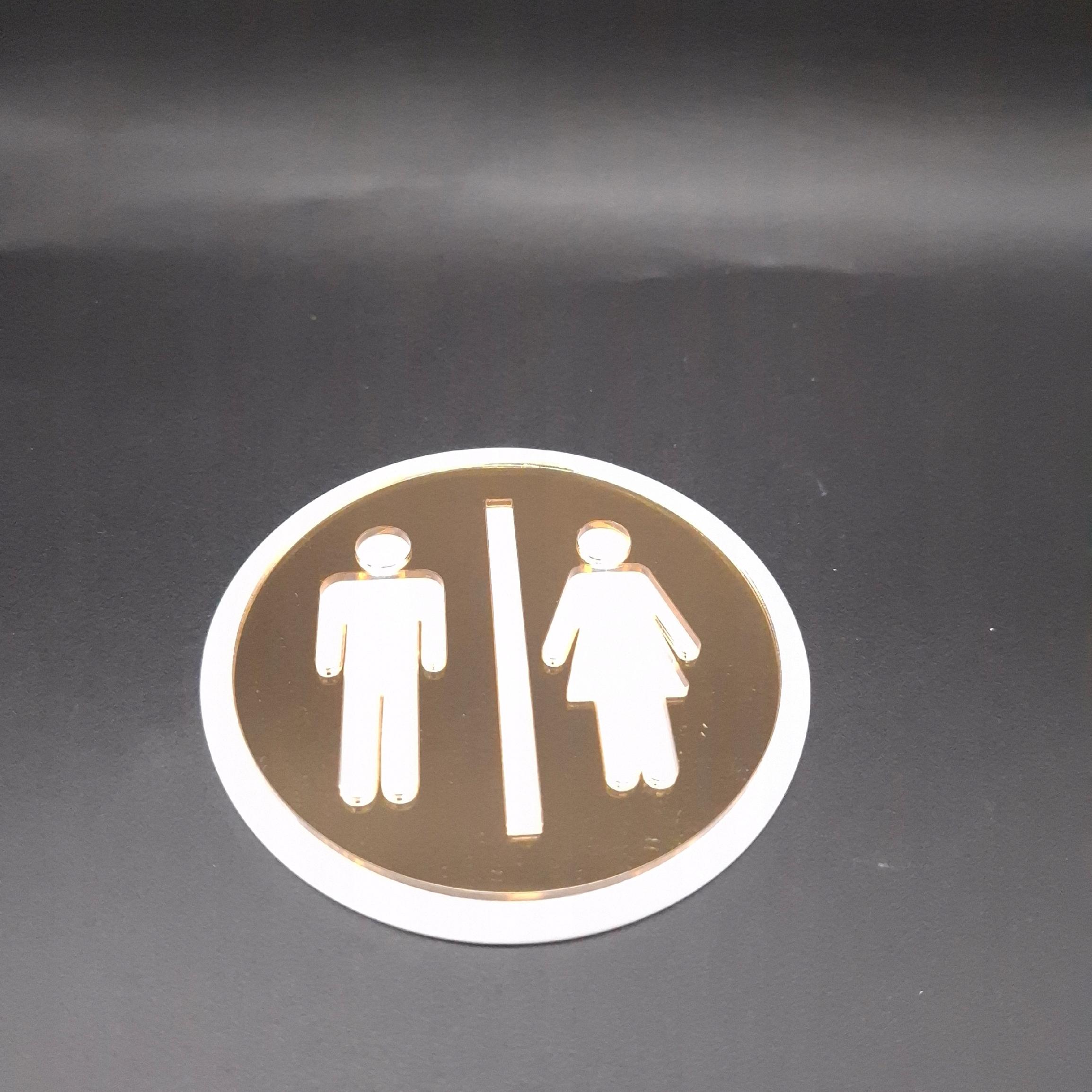Nasza odsłona „Toaleta” to nie tabliczka z napisem, lecz subtelny, okrągły panel , wykonany z TLA Z PLEXI i ozdobiony dwiema ikonami postaci – męskiej i damskiej –W ROZNYCH KOLORACH. Te piktogramy idealnie wskazują kierunek i dodają wnętrzu luksusowego charakteru.