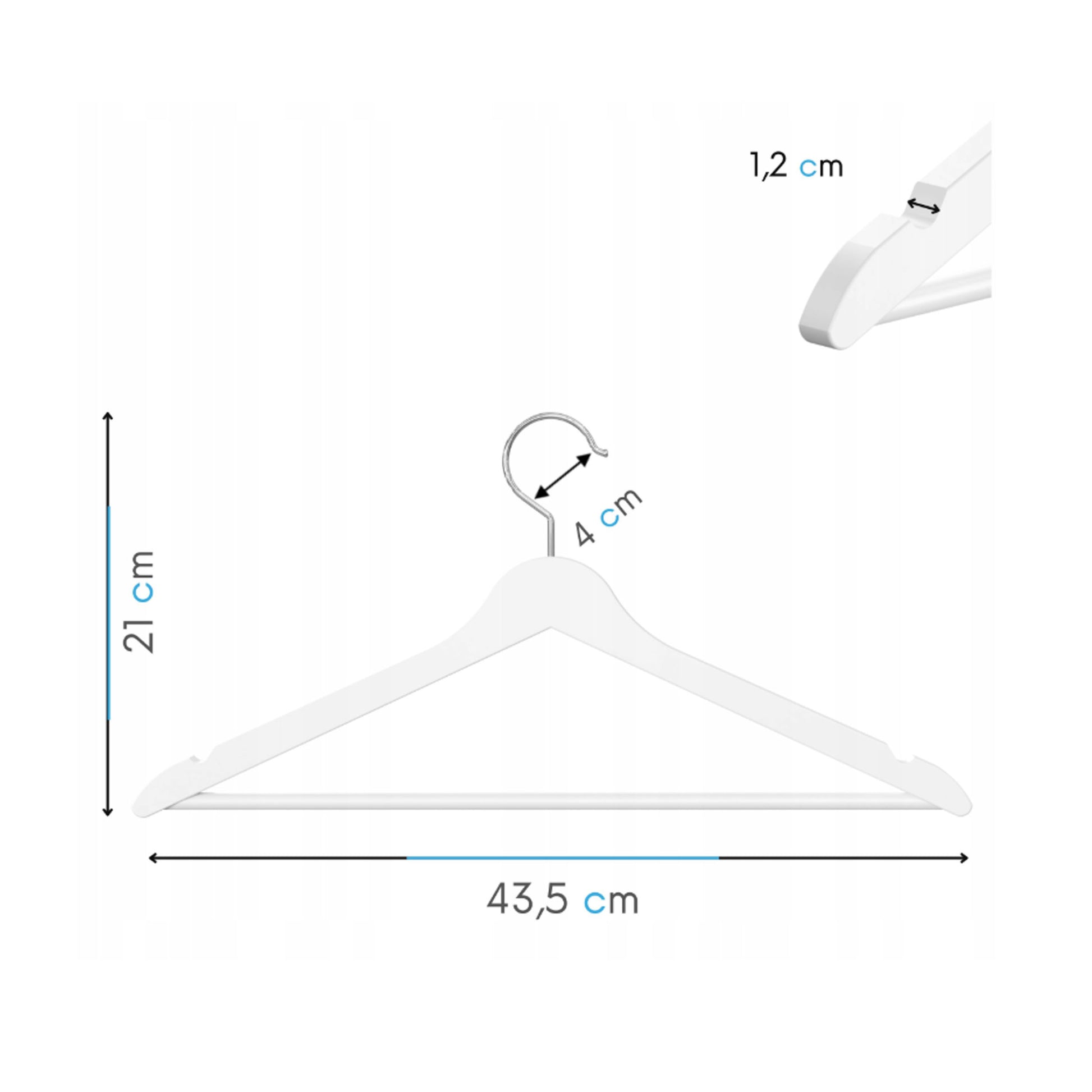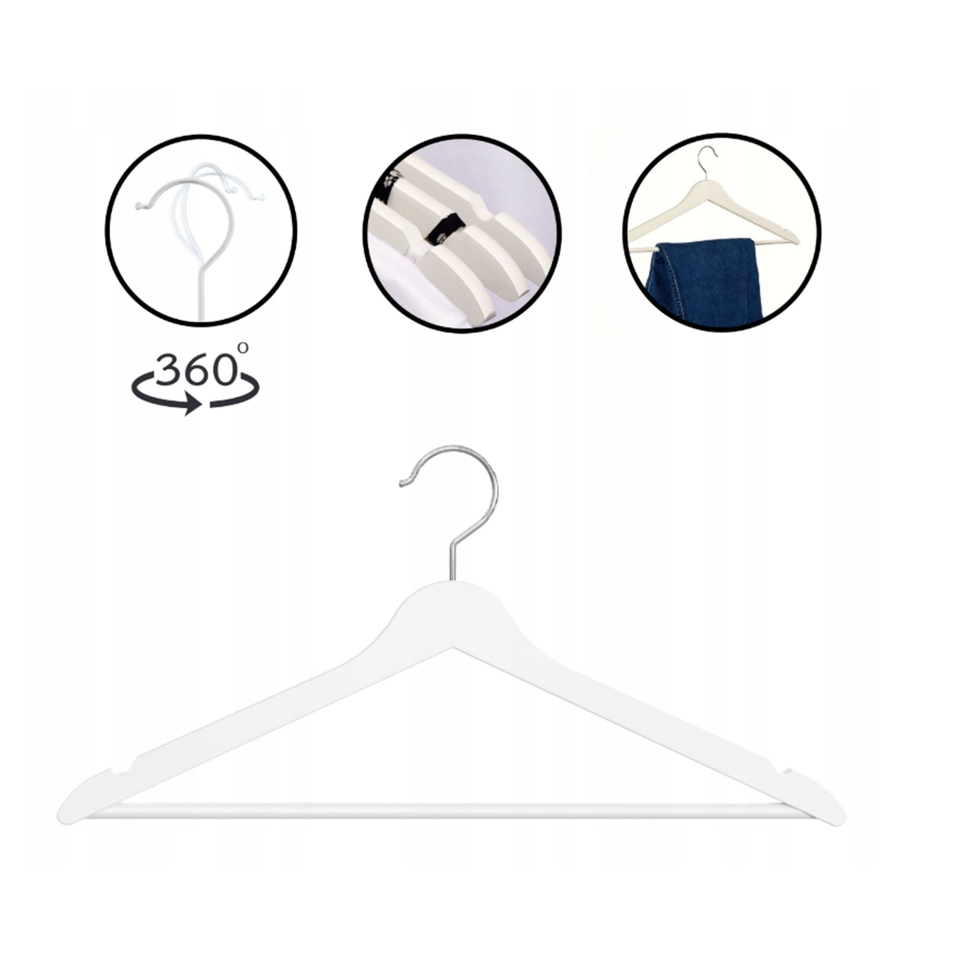 Haczyk obracany o 360° pozwala zawiesić wieszak w dowolnie wybranym kierunku, zapewniając wygodę użytkowania oraz idealne ustawienie sukni ślubnej lub garnituru podczas przygotowań i sesji zdjęciowych.