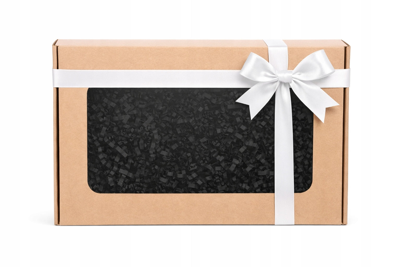 Produkt zapakowany jest w eleganckie pudełko prezentowe z okienkiem, z czarnym dekoracyjnym wypełnieniem i białą kokardką – gotowy do wręczenia jako wyjątkowy prezent ślubny, na wieczór panieński lub kawalerski.