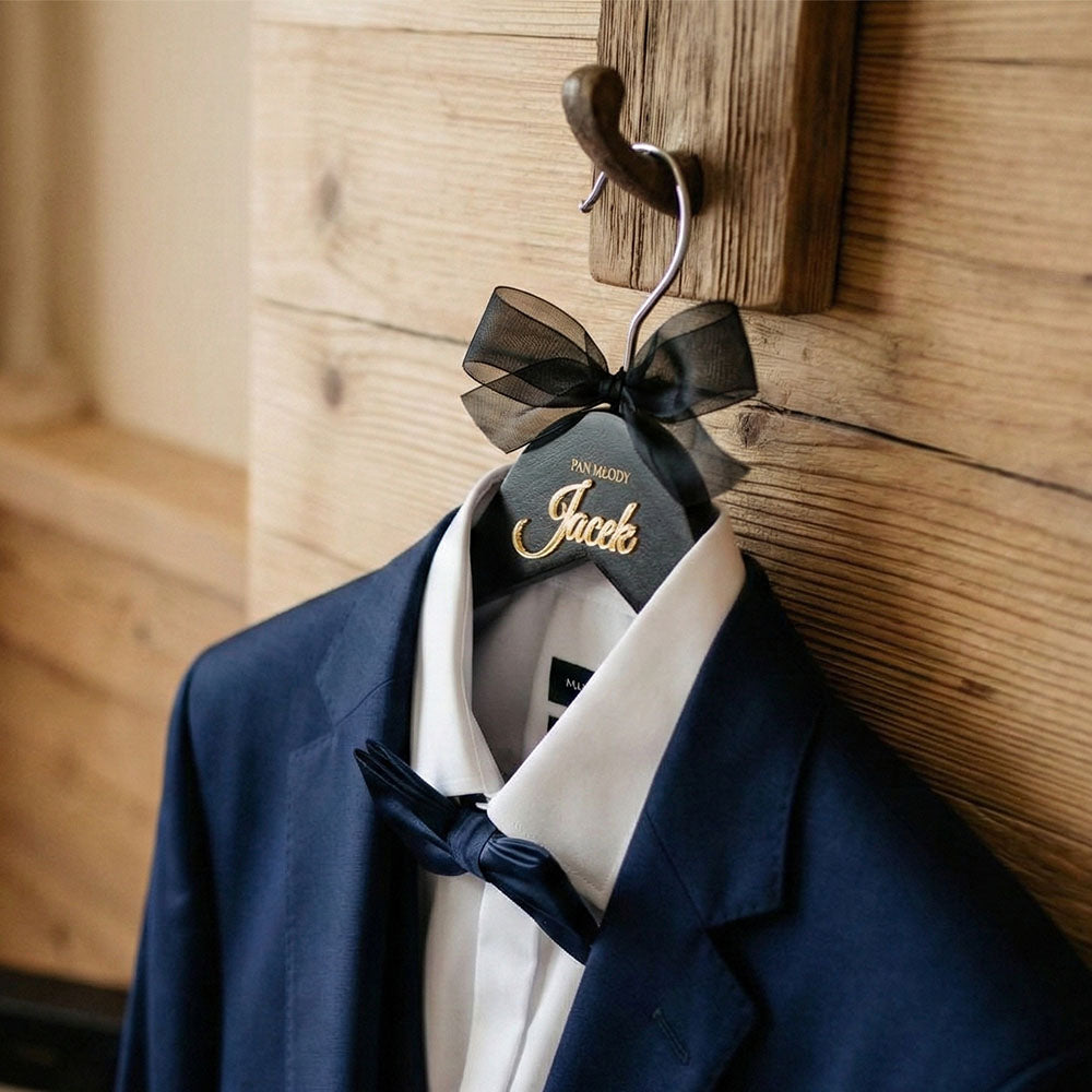 Stylowe wieszaki ślubne dla Pary Młodej to wyjątkowy dodatek do dnia ślubu, który łączy funkcjonalność z elegancją. Idealne do zawieszenia sukni ślubnej oraz garnituru Pana Młodego, a także jako piękna pamiątka i element dekoracyjny.